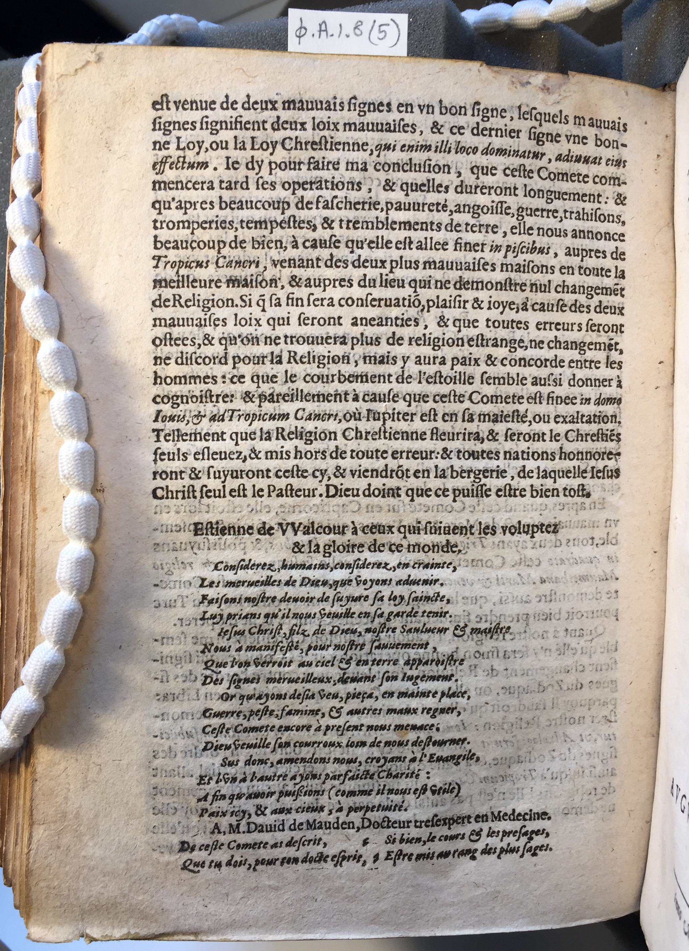 - This data set consists of 14 image files in png format, and an XML file. These files were created as part of a Digital Editions course, run by the Taylor Institution Library, during Hilary Term 2019. The course required participants to create a digitised version of a printed text. This text is 8 pages from Corpus Christi College Library phi.A.1.8(5), Mauden, David van, Declaration & signification de la comete veuë en l'an mille, cinq cens, septante & sept (Antwerp, 1578). The images of the originial text were created using an iPhone 6 and then converted to png format using paint.net. The XML file included here contains an encoded transcription of the original text, created and edited using Oxygen XML editor, according to Text Encoding Inititative (TEI) guidelines.