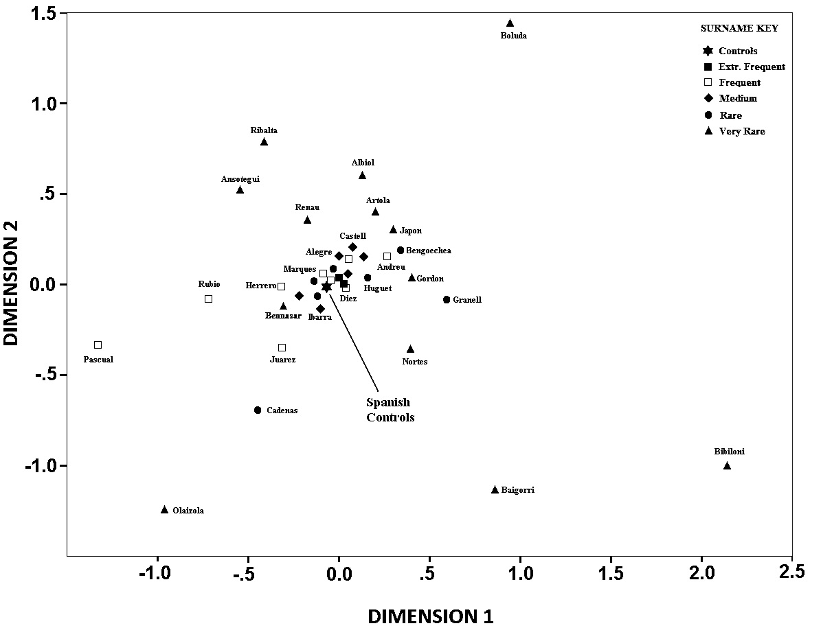 The relationship between surname frequency and Y chromosome variation in Spain.