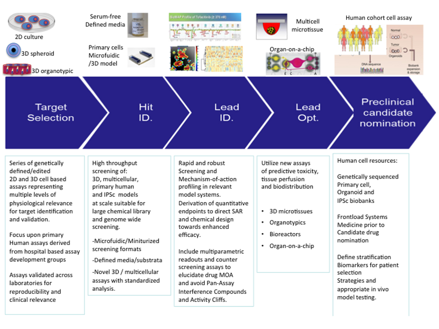 - The common and persistent failures to translate promising preclinical drug candidates into clinical success highlight the limited effectiveness of disease models currently used in drug discovery. An apparent reluctance to explore and adopt alternative cell- and tissue-based model systems, coupled with a detachment from clinical practice during assay validation, contributes to ineffective translational research. To help address these issues and stimulate debate, here we propose a set of principles to facilitate the definition and development of disease-relevant assays, and we discuss new opportunities for exploiting the latest advances in cell-based assay technologies in drug discovery, including induced pluripotent stem cells, three-dimensional (3D) co-culture and organ-on-a-chip systems, complemented by advances in single-cell imaging and gene editing technologies. Funding to support precompetitive, multidisciplinary collaborations to develop novel preclinical models and cell-based screening technologies could have a key role in improving their clinical relevance, and ultimately increase clinical success rates.