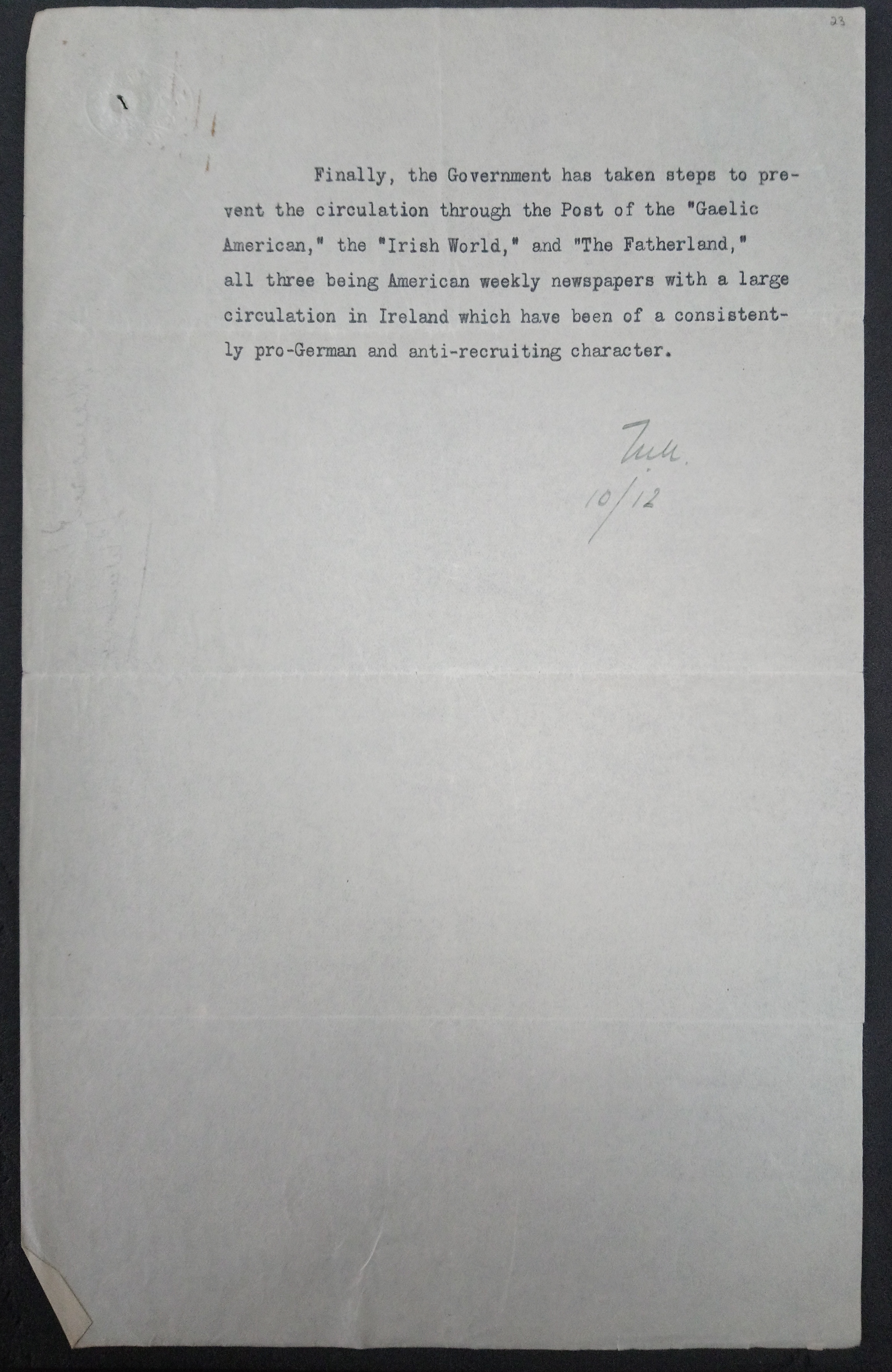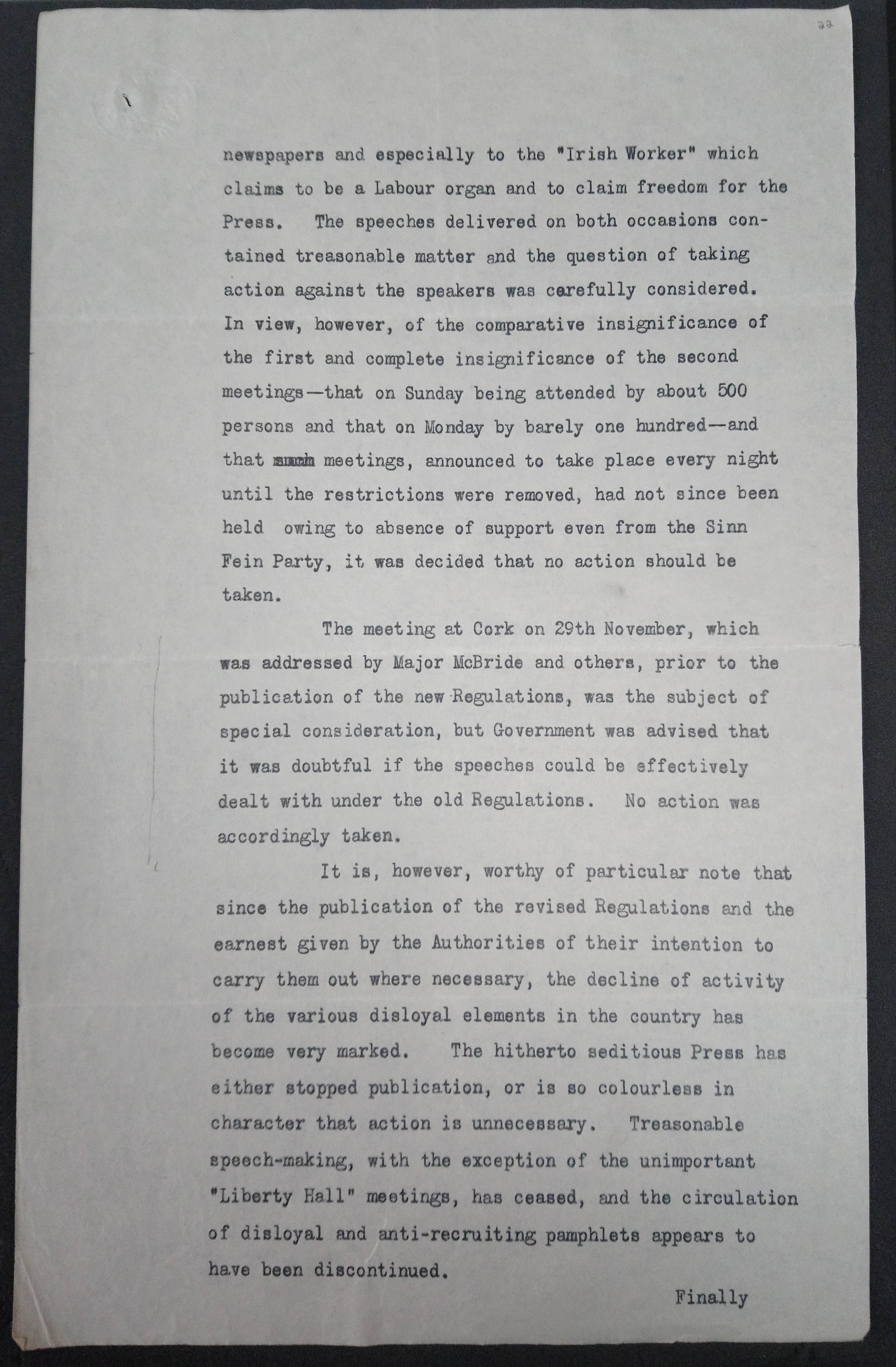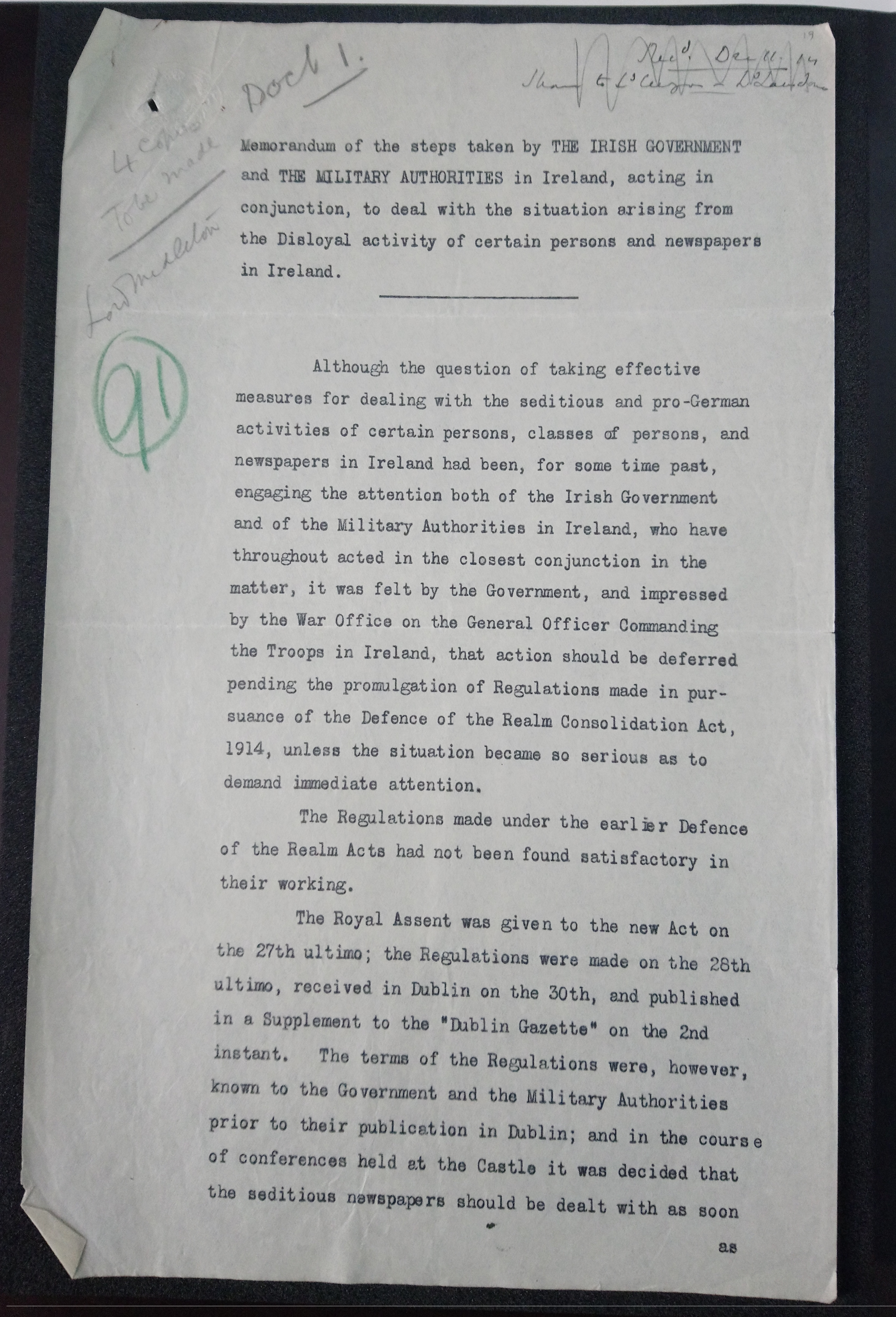 Memorandum of steps taken by the Irish government to deal with disloyalty, 11 Dec 1914 : a digital edition