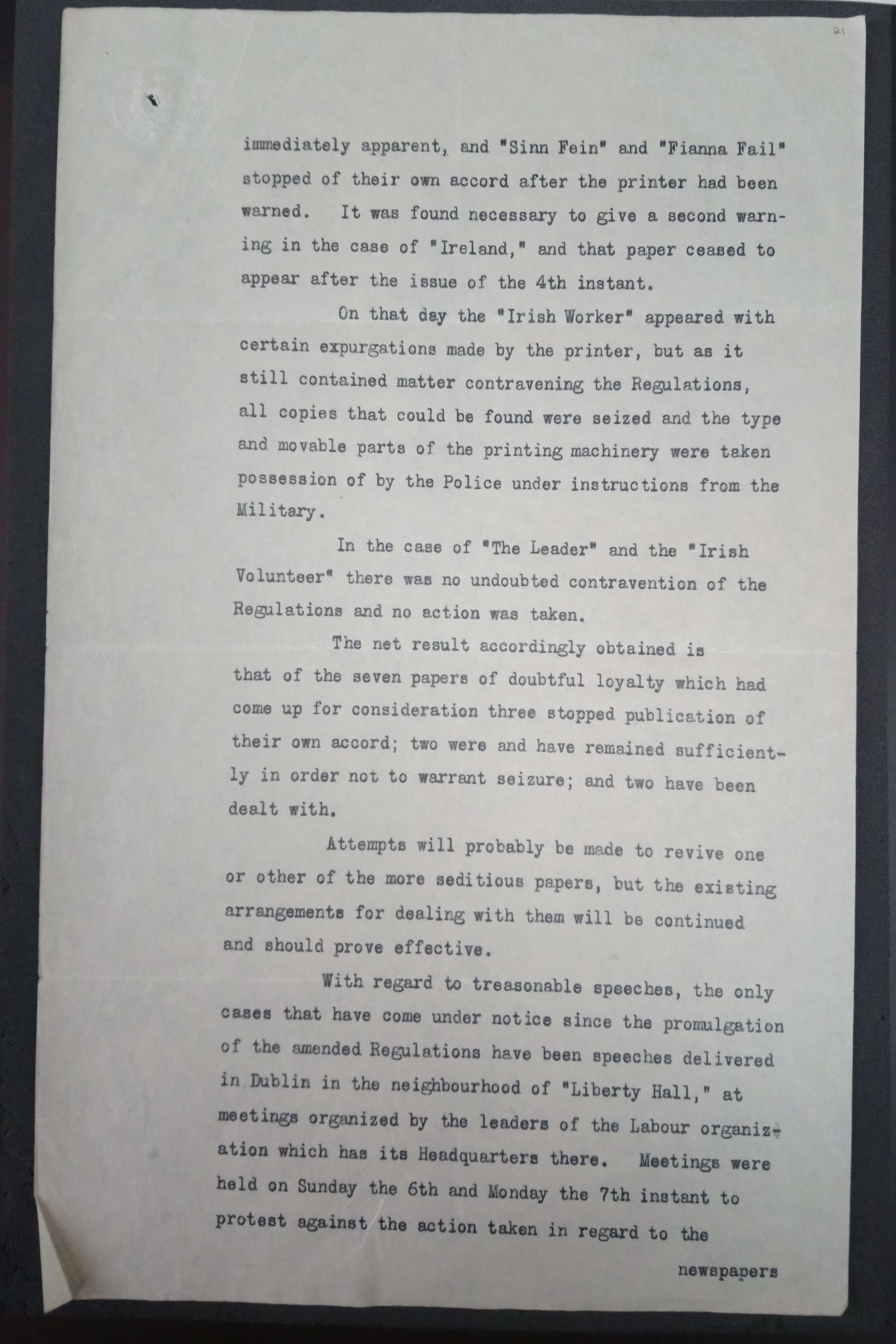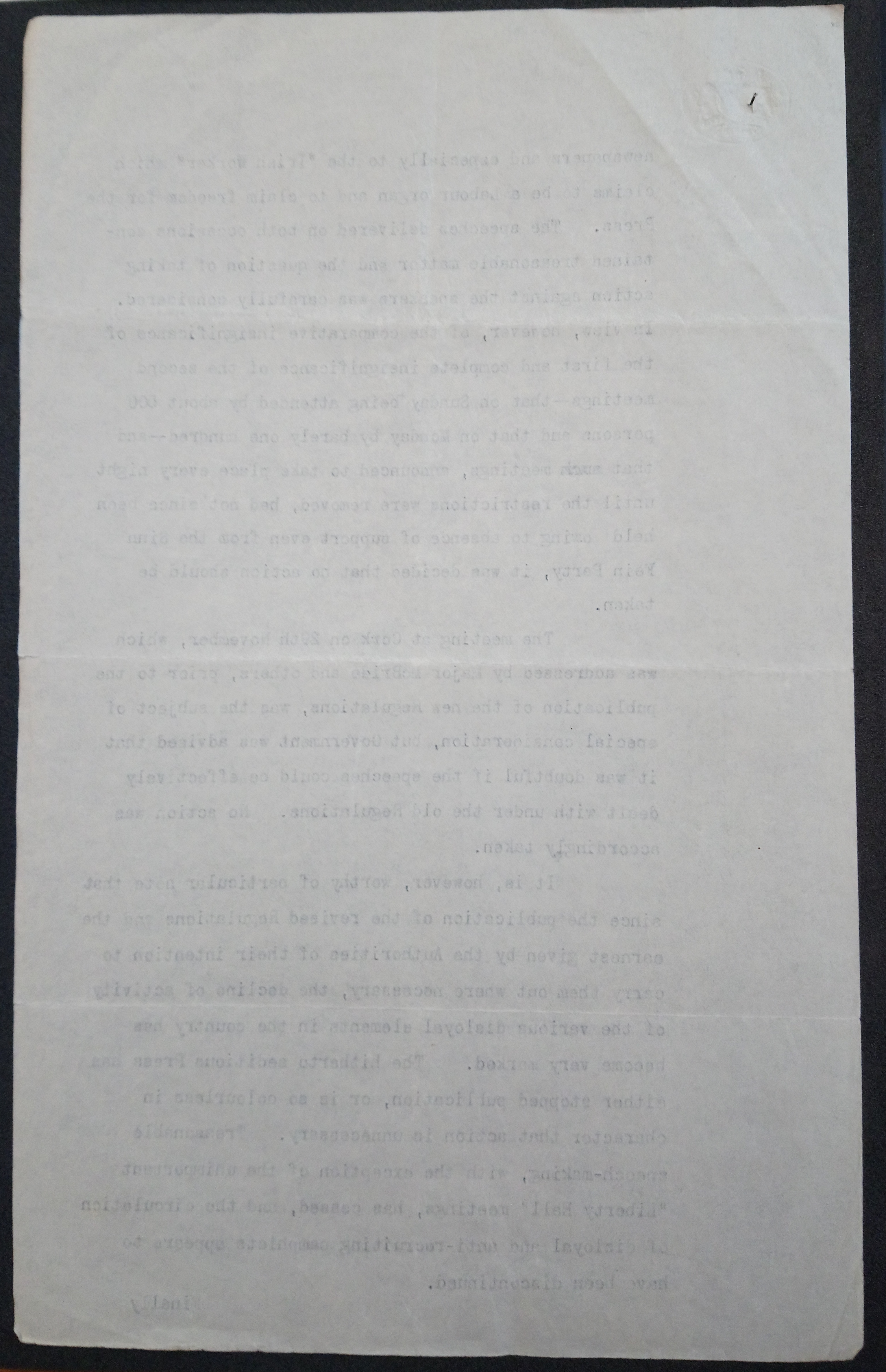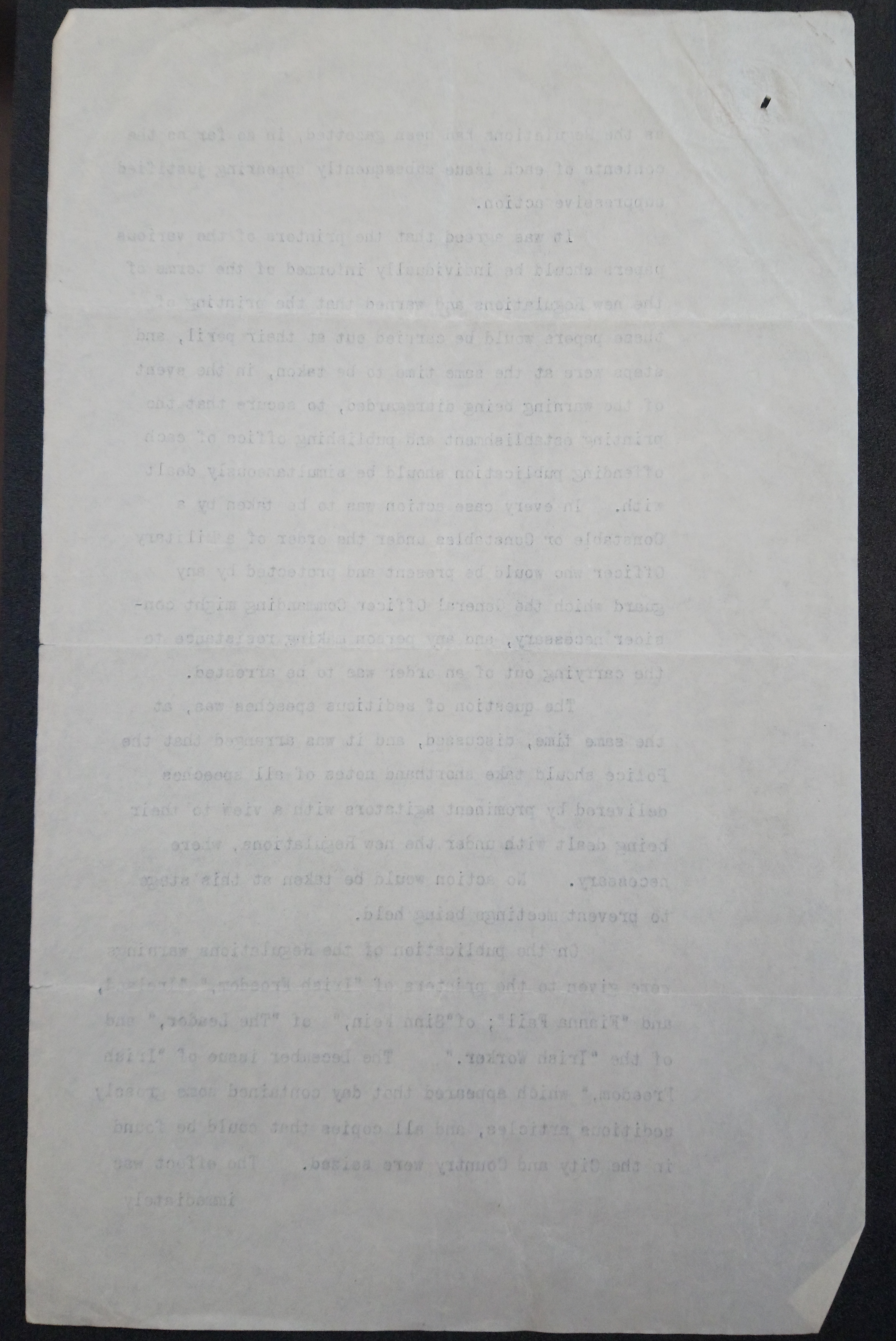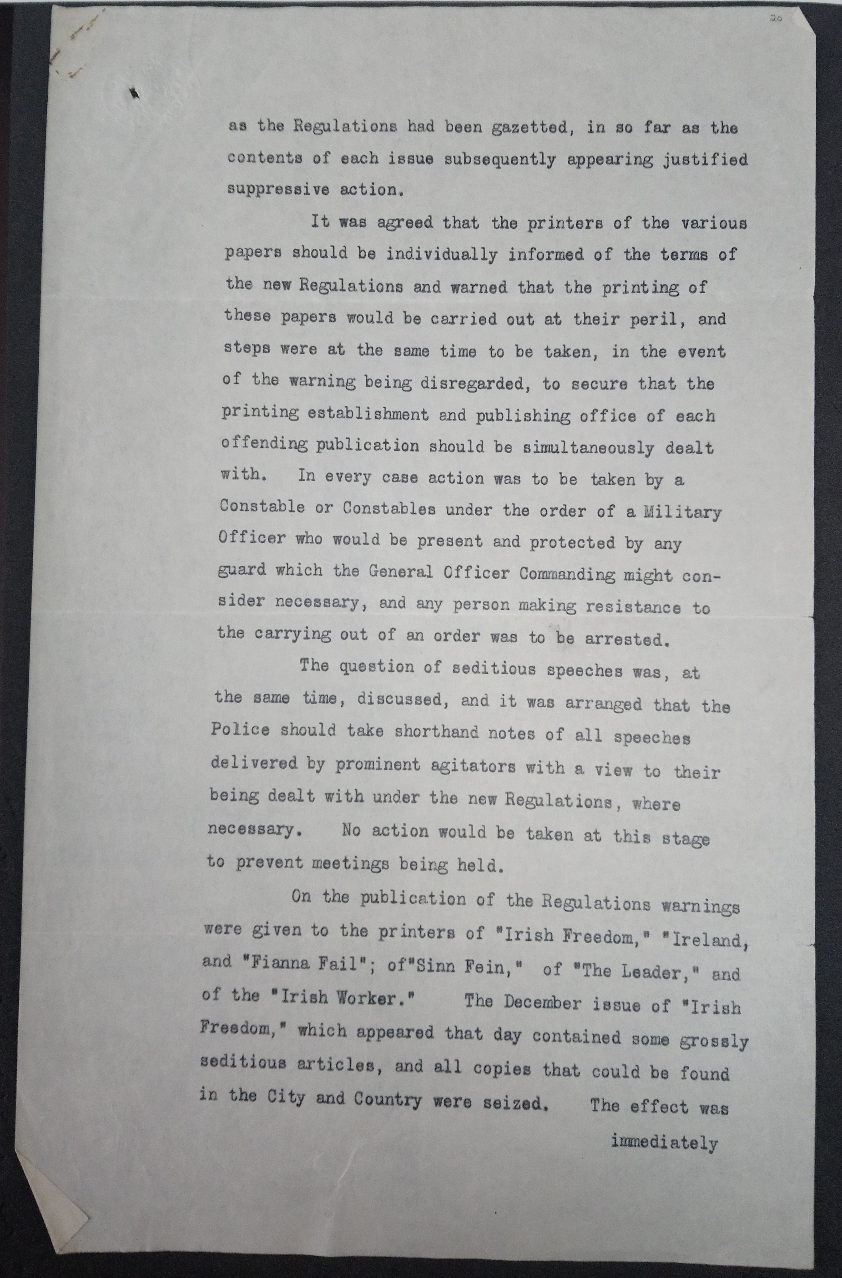 Memorandum of steps taken by the Irish government to deal with disloyalty, 11 Dec 1914 : a digital edition